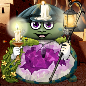 She is a gentle, candle crowned Groph who wandered out of the lantern lit streets and into the caves beneath them, drawn by the soft singing sound that shiny gems make when they are still tucked inside the stone. While others fear the dark, she treats it like a cozy room, raising her lamp staff to paint warm circles of light on glittering walls and humming as she chips free amethysts and opals with patient, careful hands. She does not hoard what she finds, because her favorite part is polishing each gem until it catches fire with color, then gifting them to her friends as tiny luck charms for courage, for good dreams, for finding your way back, always with a shy smile as she places a sparkling stone into their palm like a secret. Some nights, when the city is quiet and her candles burn low, she sits at the cave mouth and lines her treasures up like little stars, happy because she knows the best sparkle is the one you share.